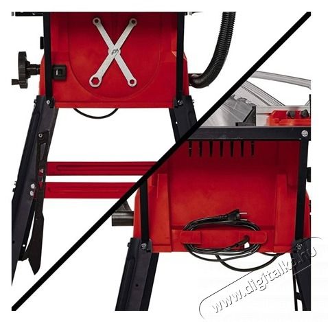 Az Einhell TC-TS 2225 U egy nagy teljesítményű és rendkívül sokoldalú készülék, amely precíz és rugalmas munkavégzést tesz lehetővé. A rendkívül erős párhuzamos ütköző és a kétoldali rögzítés pontos hosszirányú vágást, a szögütköző és a dönthető fűrészlap pedig hajszálpontos gérvágást tesznek lehetővé. A kihúzható oldalsó asztalnak, valamint a hátsó asztalszélesítésnek köszönhetően jelentősen megnövelhető a munkaasztal mérete, és így még a nagyobb munkadarabokat is könnyedén elvághatja a készülékkel. Teljesítményintenzív vágások esetén sem kell aggódnia: a lágyindítás funkció a nagy teljesítményű motort és az elektromos hálózatot egyaránt kíméli. A szerszámokat és tartozékokat (pl. a tolónyelet és a tápkábelt) a készülékházon speciálisan erre a célra kialakított tartókon rögzítheti.