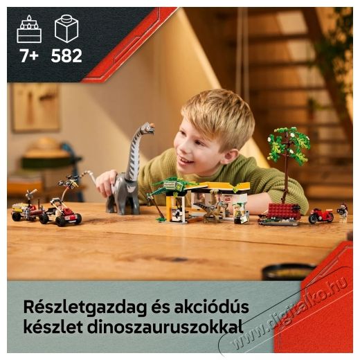 LEGO® Jurassic World 76973 Raptor és titanosaurus nyomkövető küldetésEz az építőkészlet nemcsak a Jurassic World: Rebirth film rajongóit nyűgözi le, hanem minden őslényfanatikust is. A mozgatható állkapcsú velociraptor és a mozgatható nyakú, fejű és farkú titanosaurus megszökött, így egy izgalmas üldözés vár rád.