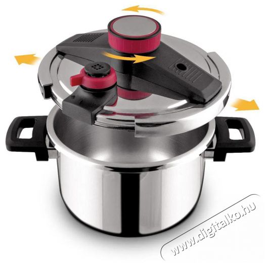 Lamart LT1227 Steam 5 l kuktaAz időd értékes. Ezt tudjuk. Ezért mutatjuk be a Lamart LT1227 kuktát, amely megkönnyíti az életedet és lecsökkenti a főzési időt. Ez az első osztályú 18/10 rozsdamentes acélból és nagyon ellenálló műanyagból készült kukta, piros designelemekkel kiegészítve, nagyszerűen felpezsdít minden konyhát. De ez nem csak a megjelenésről szól. A kukta nyomásjelzővel, dupla biztonsági szeleppel, biztonsági ablakkal és túlnyomás elleni biztosítékkal is fel van szerelve, amely garantálja, hogy a főzés a lehető legbiztonságosabb lesz. Szendvicsaljának köszönhetően minden típusú tűzhelyen használható, beleértve az indukciós főzőlapokat is, erős fogantyúi pedig könnyű kezelést tesznek lehetővé, égési sérülésektől való félelem nélkül. Gyors és egészséges főzés a Lamart LT1227 kuktában.