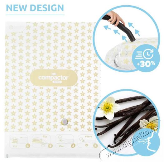 •     Az ismert Compactor vákuumzsák lehetővé teszi a holmik hatékony tárolását, amiket nem használsz túl gyakran