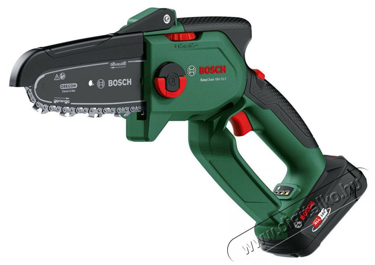 A Bosch EasyChain 18V-15-7 (1x2,5 Ah) 0.600.8B8.900 láncfűrész főbb jellemzői:- Rendkívül alacsony, 1,7 kg-os súly