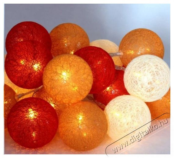 Iris Gömb alakú 6cm/színes fonott/3m/piros-narancs-meleg fehér/20db LED-es/USB-s fénydekoráció