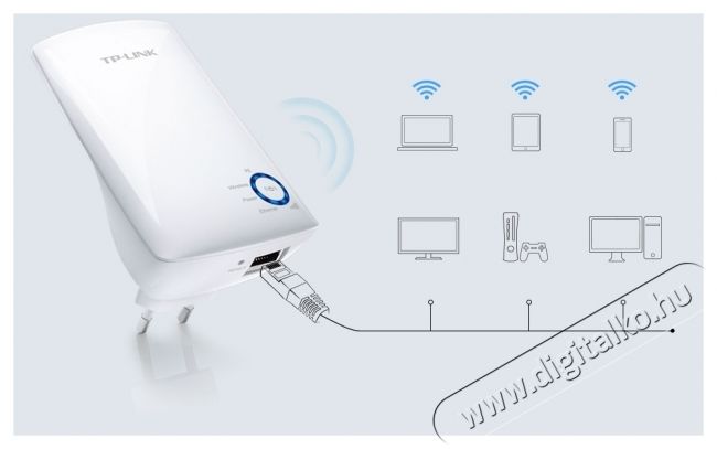 A lefedettségnövelő funkción kívül, az eszköz egy praktikus Ethernet csatlakozóval is fel van szerelve, mellyel Wi-Fi támogatás nélküli eszközöket csatlakoztathat a vezeték nélküli, otthoni vagy irodai hálózatához. A Blu-ray lejátszókat, játékkonzolokat, DVD lejátszókat és okos TV-ket most egyszerűen csatlakoztathatja az internethez vagy az otthoni hálózatához.