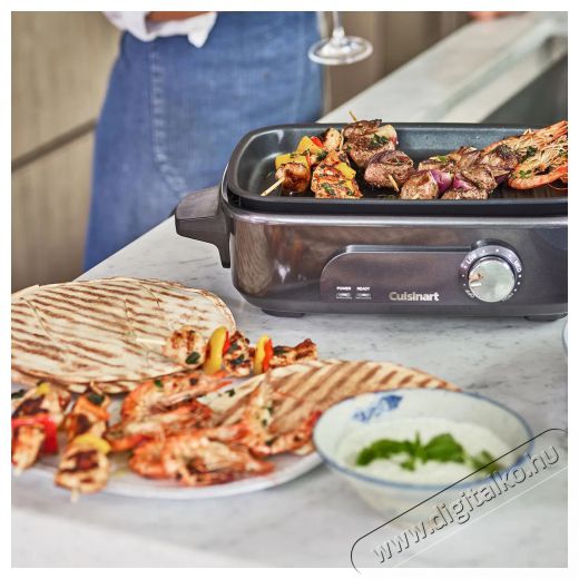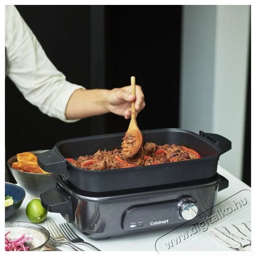 Szeretnéd, ha minden étel egyetlen főzőedényben főne készre? Az elegáns Cuisinart multifunkciós elektromos főzőedény egyszerű és komplikált ételek főzésére is tökéletes. Max. kapacitása: 5 l. A sütés funkcióval ízletes sülteket készíthetsz. A húsok és zöldségek grillezése még sosem volt ennyire könnyű. Bízd a főzőedényre, hogy helyetted készítse el a fogásokat. Csak válaszd ki a megfelelő programot. A dizájnos Cuisinart GRMC3E 5 l szinte minden alapanyaggal megbirkózik. A levehető részek mosogatógépben tisztíthatók. Egy párolókosár is jár hozzá.
