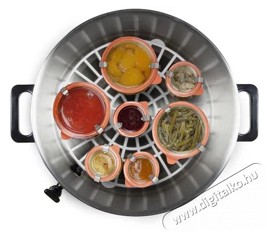 DOMO DO42327PC- Széleskörűen alkalmazható főzőedényA nagy kapacitású DOMO DO42327PC edény nemcsak a gyümölcsök, zöldségek és egyéb élelmiszerek klasszikus tartósítására használható, hanem teáskannaként vagy forralt bor adagolásához is. Az edény 27 literes űrtartalmú, és praktikus műanyag kifolyócsappal rendelkezik, amely szükség esetén könnyen elzárható. Ezért használhatod italadagolóként partikon és más nagyobb rendezvényeken. Ha forró italokat szeretnél felszolgálni, értékelni fogod, hogy a DOMO DO42327PC állítható termosztáttal rendelkezik. A csomag tartalmaz egy műanyag rácsot, amely az üvegek alá helyezhető, valamint egy műanyag fedelet.