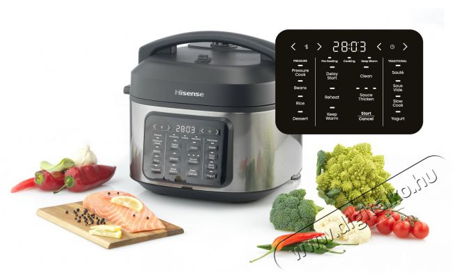 Tíz intelligens programA Hisense multifunkciós főzőedény 10 intelligens programot kínál, amelyeket a saját igényeid szerint állíthatsz be. Ezután minden beállítást könnyen nyomon követhetsz az áttekinthető kijelzőn. Olyan módok közül választhatsz, mint a klasszikus főzés, a nyomás alatti vagy lassú főzés, a pörkölés, a rántás, a sous vide, a párolás, a rizs, hüvelyesek, desszertek vagy joghurt készítése.