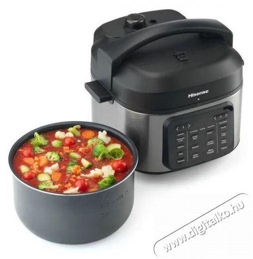 Hisense HMC6SBK multifunkciós főzőedényA Hisense HMC6SBK egy multifunkciós főzőedény, amely számos klasszikus konyhai segédeszközt helyettesíthet. Különböző programjainak és funkcióinak köszönhetően az ételek széles skáláját készítheted el, a levesektől a sült húsokon és a desszerteken át a joghurtig.