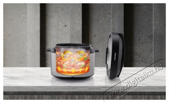 A Hisense HMC6SBK multifunkciós főzőedény kifinomult kialakításaSzélesebb alapjának és lapos aljának köszönhetően a Hisense HMC6SBK több étel elkészítésére képes kevesebb idő alatt. Használhatod a sauté funkciót is - ez egy száraz hőfokon történő főzési módszer, amely az ételek gyorsabb barnulásával hozza ki az ízeket. A készülék levehető fedője megkönnyíti a tálalást.
