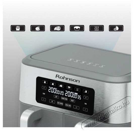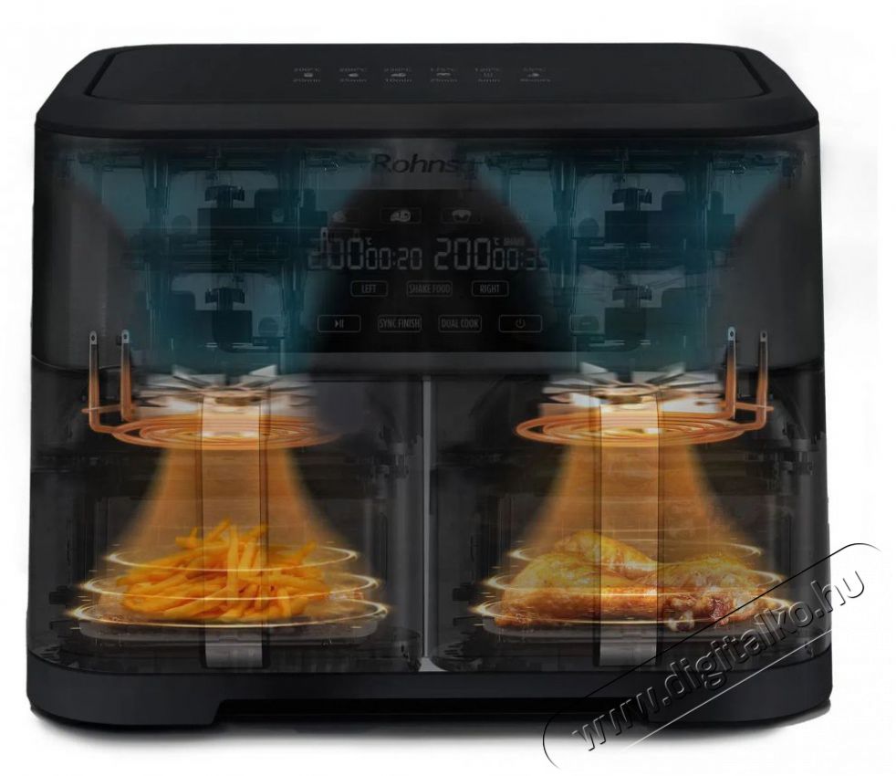 Ezen Rohnson R-2844 - 2x 4,25l airfryer haladó funkciói egyszerűsítik a konyhai munkát