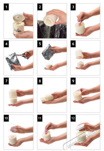 A granulátum dobozán láthatja a képes instrukciókat, hogy milyen egyszerű az utántöltés.
