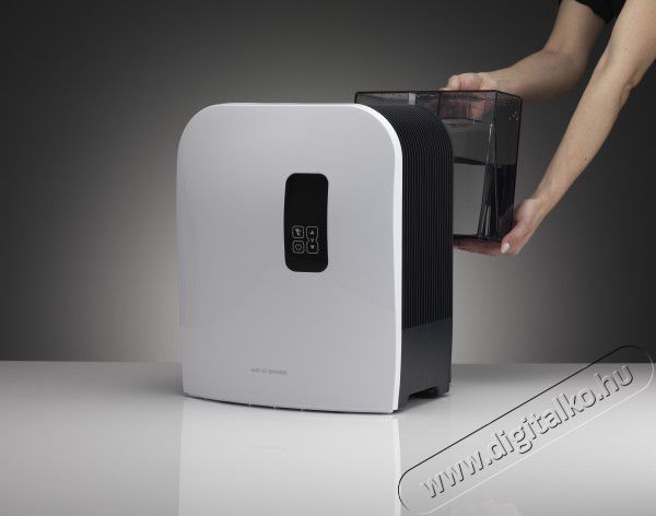 - A nagy, 7 literes tartályba, akár magasabb ásványianyag tartalmú csapvizet is beletölthet, mivel a készülék nem porlaszt, nem fog fehér port kifújni