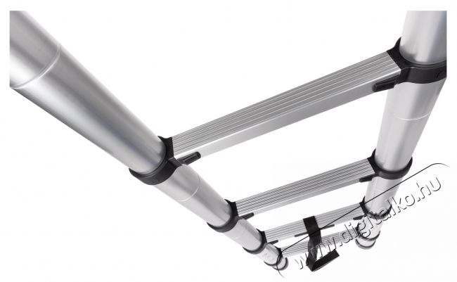A létra maximális hossza 3,2 méter, 11 fokból áll, amelyek egymástól állítható távolságra helyezkednek el, így precízen testre szabható. A 150 kg-os maximális terhelhetőség biztosítja, hogy akár szerszámokkal felszerelkezve is kényelmesen és biztonságosan dolgozhat rajta.