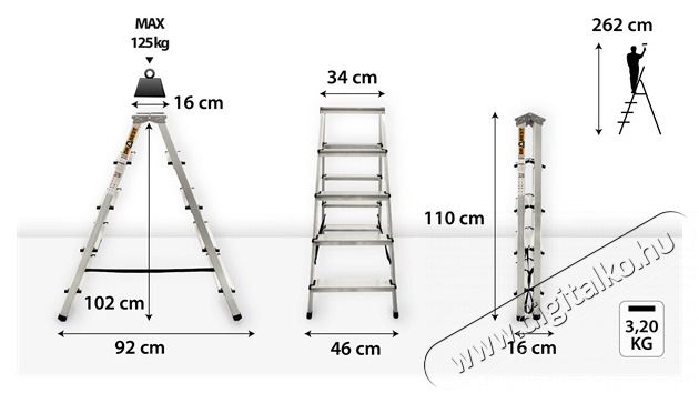 HOME Alumínium Kétoldalas Létra, 5 fokos, 125 kg teherbírásSokoldalúság egy karnyújtásnyira!Akár 2,62 méteres magasságot is elérhetsz veleLenyűgöző kialakításának köszönhetően a létra munkamagassága tökéletesen megfelel a 170 cm átlagmagasságú felhasználók igényeinek. Ez lehetővé teszi, hogy akár 2,62 méteres magasságot is kényelmesen elérj, így ez a létra nélkülözhetetlen eszköz minden otthonban.