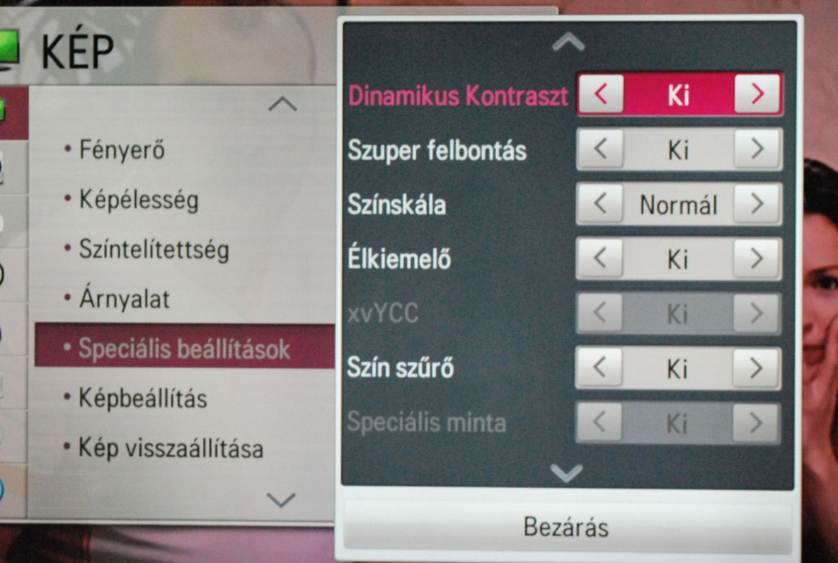A Szuper felbontás elméletileg arra szolgál, hogy az elektronika a satnya minőségű anyagokat feljavítsa, de mi semmilyen különbséget nem tapasztaltunk, még akkor sem, amikor a leggyatrább SD jeleket küldtük rá. Jó minőségű forrás, illetve számítógép használata esetén a Fekete szintet érdemes magas értéken tartani (ez ugyanis a berkező jelekre utal), hiszen alacsonyra állítva a sötétebb képrészletek elveszhetnek.