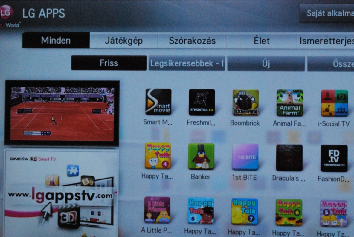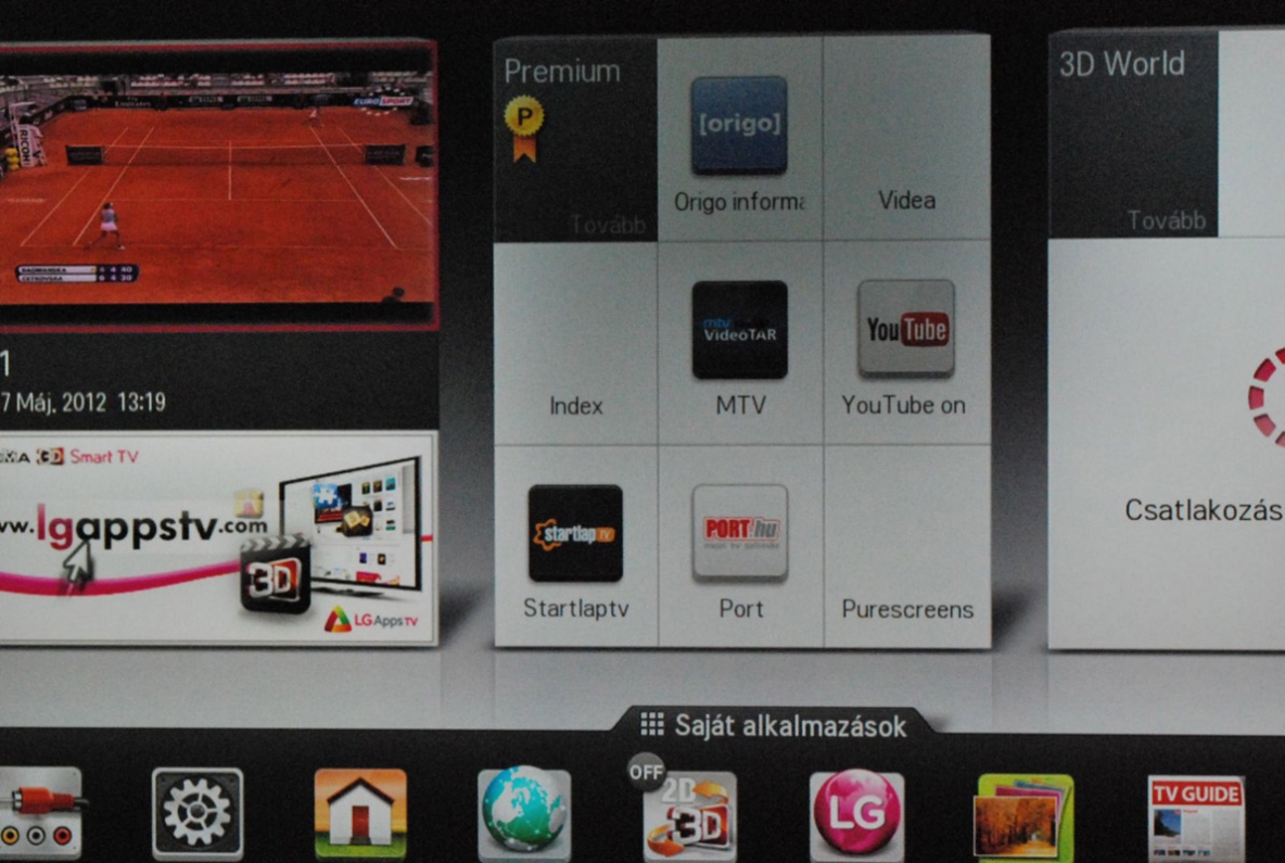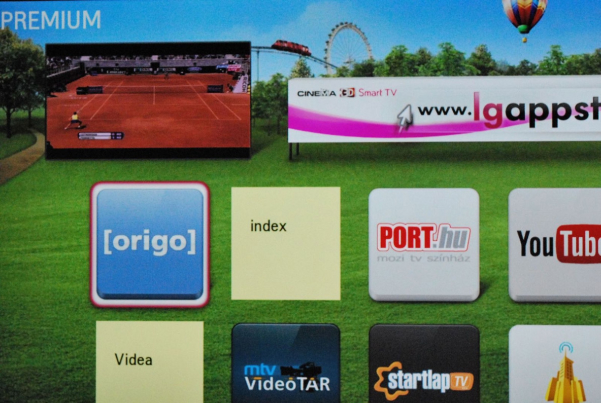 A prémium csoportba 17 speciális alkalmazás tartozik, amit direkt az LG tévéire optimalizáltak. Ezek között megtalálható a videómegosztó YouTube és a Daily Motion, a képmegosztó Picasa, az időjárás-előrejelző AccuWeather, vagy épp a döbbenetes zenei adatbázissal rendelkező Aupeo. Emellett nem hiányoznak a magyar tartalmak sem, így például olvashatóak az Index és az Origo aktuális cikkei, valamint átböngészhető a Port.hu programajánló.