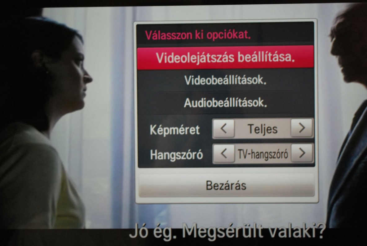 Ezenkívül még ott van a gyorsmenü is, amelyben csak a legalapvetőbb kép- és hangbeállítások között lehet választani, viszont hasznos lehet, ha valaki gyorsan akar módosítani például a képarányon.