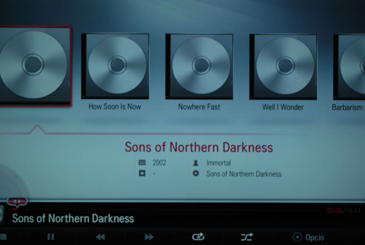 Sajnos a JPG kiterjesztésű fájlok mellett semmilyen más szabvány megjelenítését nem támogatja, ami azért elég szomorú. A formátumtámogatás a zeneszámok esetén sem az erőssége, az MP3-mal és a WMA-val véget is ért a kompatibilis állományok köre, úgyhogy a jó minőségű veszteségmentes, fájlok, mint a FLAC, APE vagy WAV anyagok mehetnek a levesbe. Maga a lejátszófelület kifejezetten kulturált, jól néz ki, és még a fájlokba kódolt különféle metaadatok, az ID3 tagek is feltűnnek a képernyőn. Vannak már olyan televíziók a piacon, amelyek aktív netkapcsolat esetén lehetővé teszik, hogy a felhasználó egy gombnyomással információt kérjen le az éppen futó dallal kapcsolatban speciális alkalmazások (például a Gracenote) bevetésével, de ez éppen nem ilyen fajta.