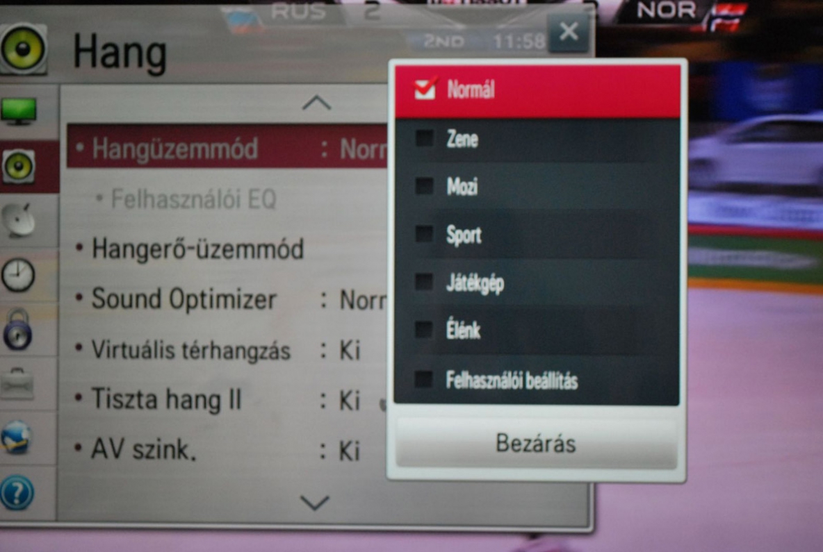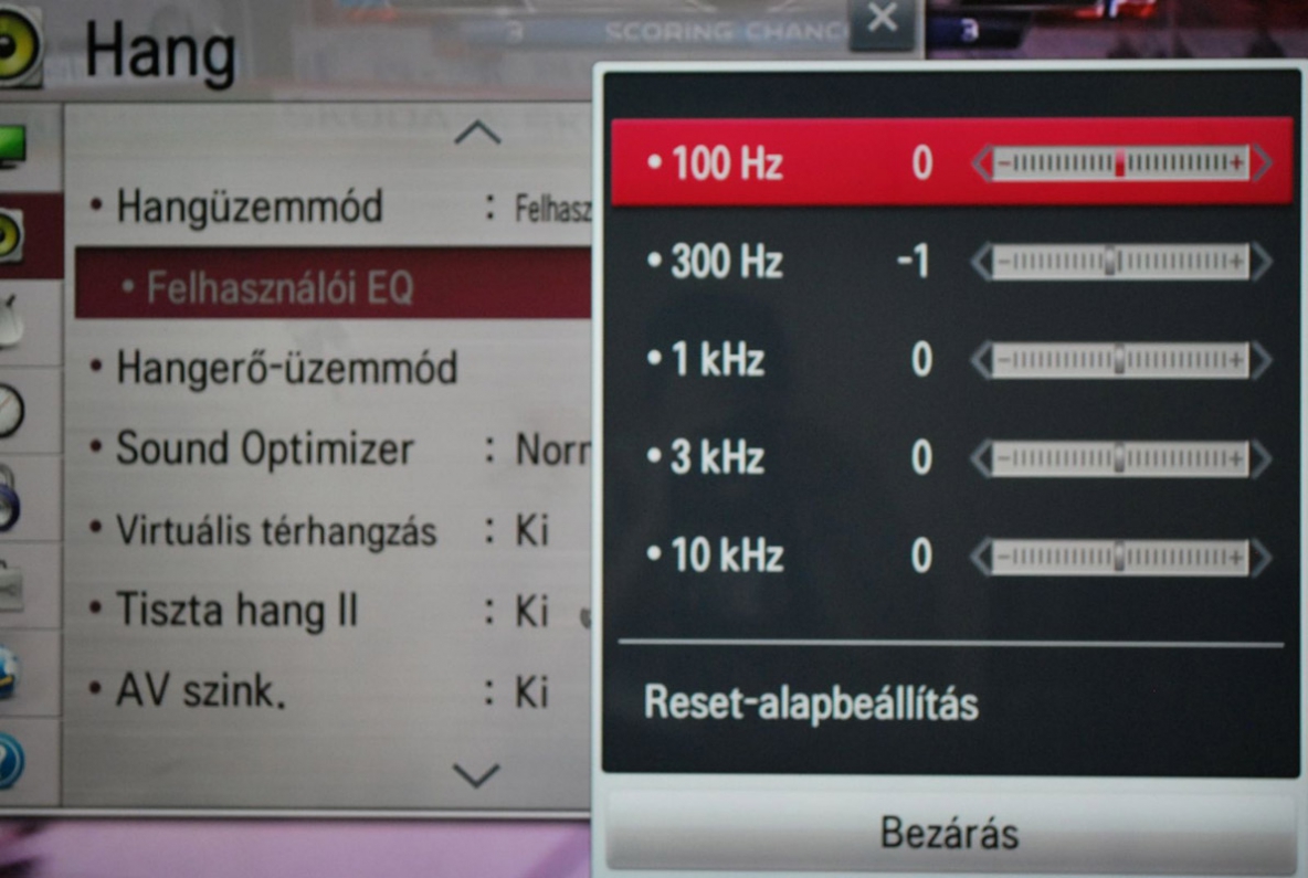 Helyet kapott a hangopciók között az Auto hangerő, amely a berobbanó reklámoknál, illetve a csatornaváltáskor fenyegető hangagresszió ellen nyújt védelmet. A Tiszta hang bekapcsolásával az elektronika a beszédhangokra fókuszál, és ezeket emeli ki. A Virtuális térhangzás azt ígéri, hogy aktiválása után életszerű, 3D hanghatások töltik majd ki a szobát, de ez persze megint nem jött össze.