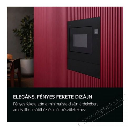 Elegáns, fényes fekete felület A mikrohullámú sütő elegáns, minimalista, fényes fekete dizájnja illeszkedik a sütőhöz és a többi készülékhez.