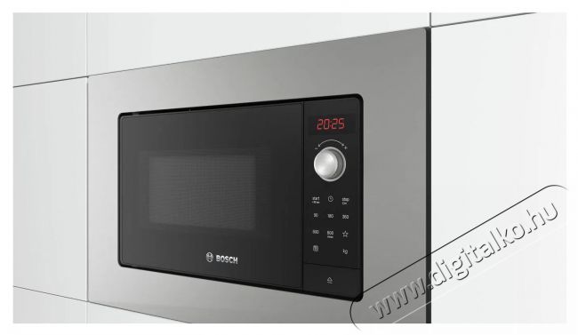 BOSCH BFL623MS3 Serie 2 mikrohullámú sütőA BOSCH BFL623MS3 Serie 2 egy csúcsminőségű mikrohullámú sütő, amely nemcsak modern formatervezésével tűnik ki, hanem hasznos funkcióival is, amelyek a mindennapi ételkészítést a lehető legkönnyebbé teszik. Erőteljes, akár 800 W-os teljesítményt kínál, amely 5 fokozatban állítható. A tágas, 20 literes belső térfogat, valamint a 27 cm átmérőjű forgótányér is bizonyára elnyeri a tetszésedet. Az elkészítendő étel típusától függően a számlapon kiválaszthatod az AutoPilot7 program egyikét, megadhatod az étel súlyát, és kész! A program automatikusan szabályozza a melegítés típusát, a hőmérsékletet és az időt. A kényelmes vezérlés egy gombokkal ellátott tekerőgomb és egy jól olvasható LED-kijelző segítségével történik.