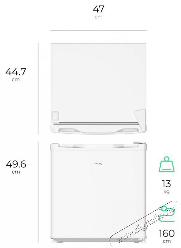 | Hűtőszekrény teljes hasznos térfogata | 46 l |