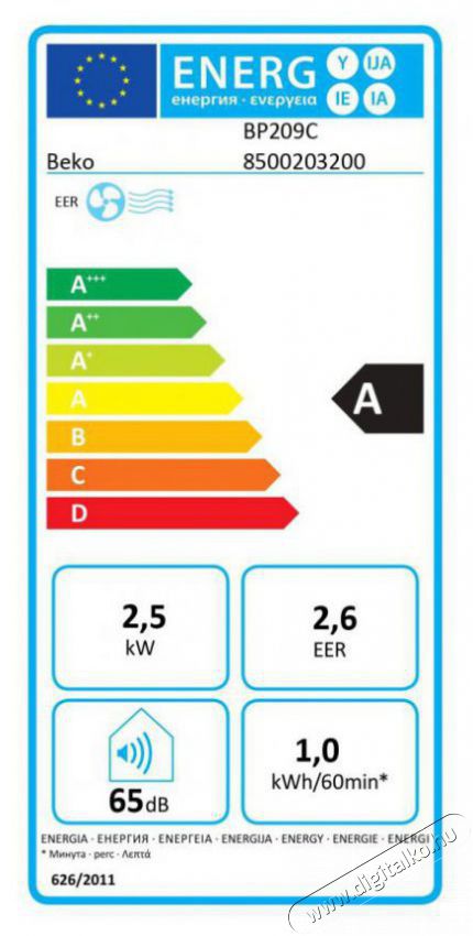 -     Eme BEKO mobil klíma energetikai besorolási osztálya: A