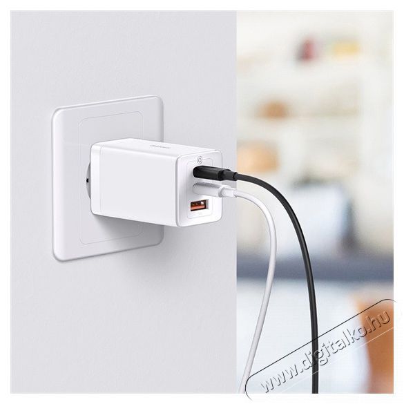Baseus GaN5 Pro 2xUSB-C + USB-A hálózati töltő 65W (CCGP120202)Multifunkcionalitás: A GaN5 Pro Baseus töltő 2 USB-C porttal és egy USB porttal rendelkezik, így egyszerre akár 3 eszközt is tölthetsz vele, például telefonokat, táblagépeket, laptopokat vagy játékkonzolokat. Ezzel a megoldással nem kell többé egy újabb szabad aljzatra várnia a készülékei töltéséhez.