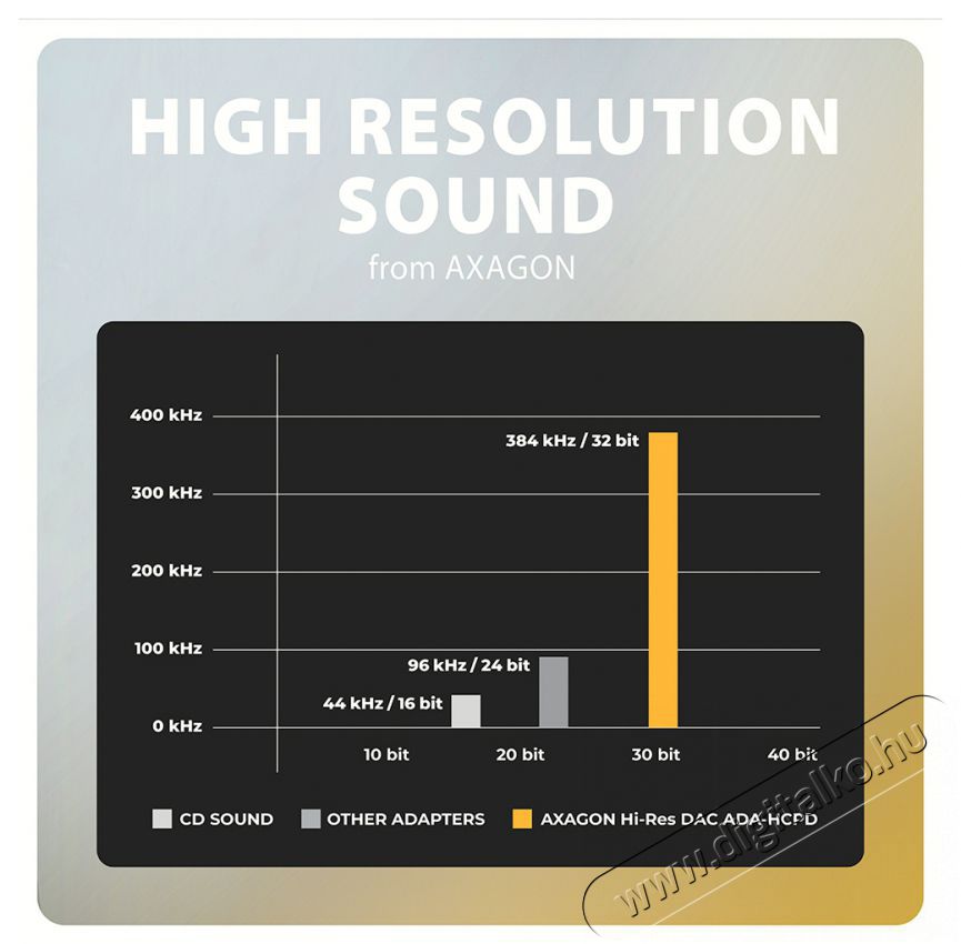 A DAC-nak köszönhetően az ADA-HCPD-vel magasabb minőségben élvezheted a zenét, mint a laptop szabványos fejhallgató-kimenetével. Egy laptopban a nem működő eredeti hangkártya helyettesítésére is alkalmas, a fejhallgató kimenethez vagy a mikrofon bemenethez.
