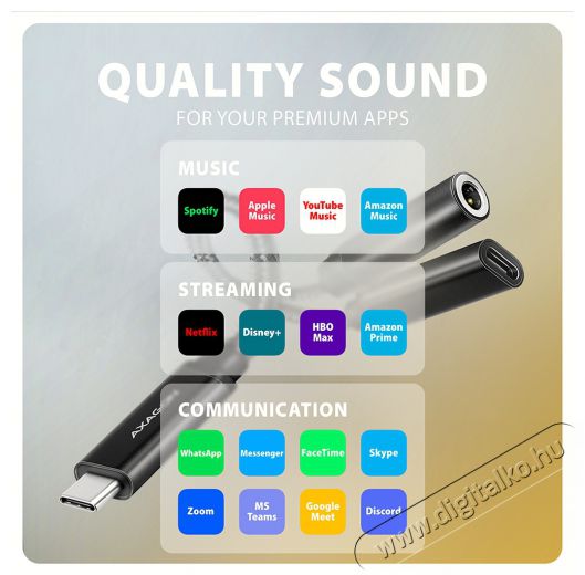 Ez az hangkártya optimális a veszteségmentes formátumok, például FLAC, WMA, WAV, APE, AAC vagy ALAC stb. számára. A legjobb minőségű zene olyan platformok prémium fiókjain keresztül érhető el, mint a Spotify, az Apple Music, a YouTube Music és az Amazon Music Unlimited. Ezenkívül, ez a hangadapter remek más népszerű streaming szolgáltatások zavartalan megtekintéséhez is, mint a Netflix, a Disney+, az HBO Max, az Amazon Prime vagy az Apple TV+.