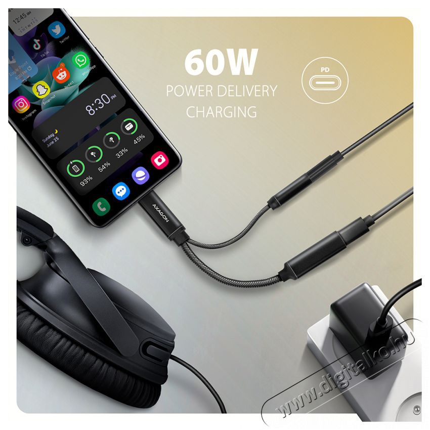 AXAGON ADA-HCPD, Hi-Res DAC audio adapter, 384kHz/32bit stereo, USB-C to 3.5mm jack & PD 60W/3A
