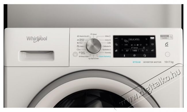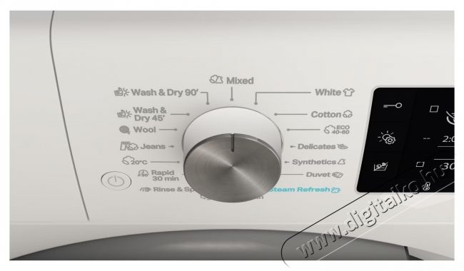 | Tulajdonság | FreshCare+ Mosási ciklus jelző Késleltetett indítás Elindítás/Megállítás Programállapot mutató Rapid Option Gőzmosás |