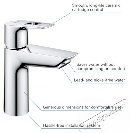 Grohe BauLoop OHM "Click" 5,7l M mosdókagyló csaptelep, egykaros, kerámia betét, levegőztető, Króm
