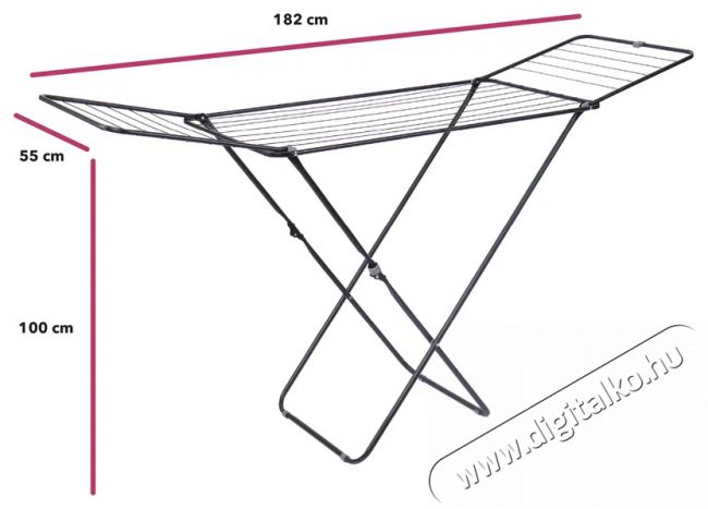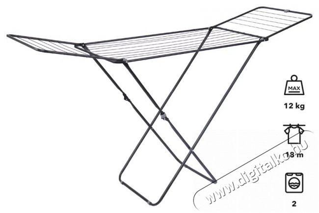 - Szárítási terület: 18 méter (18 vezeték) = két mosógépnyi mennyiség