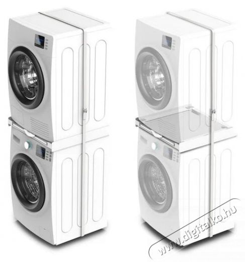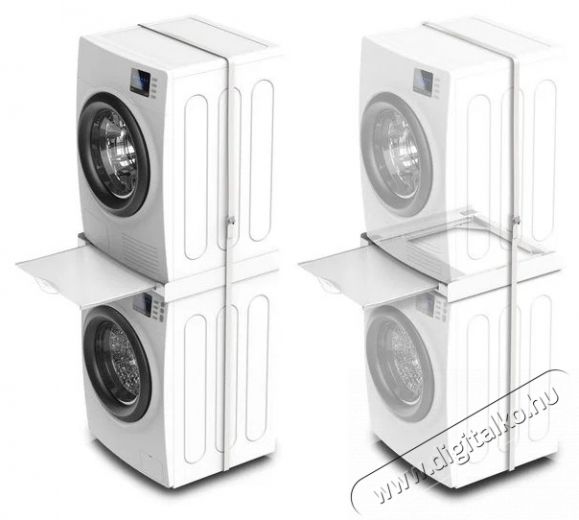 - Kiváló megoldás a mosókonyha helyének maximalizálására, mivel lehetővé teszi, hogy a szárítógépet egyszerűen, praktikusan és biztonságosan a mosógép tetejére helyezd