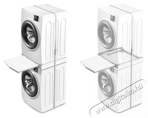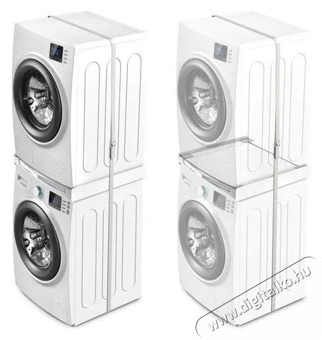 - Kiváló megoldás a mosókonyha helyének maximalizálására, mivel lehetővé teszi, hogy a szárítógépet egyszerűen, praktikusan és biztonságosan a mosógép tetejére helyezd