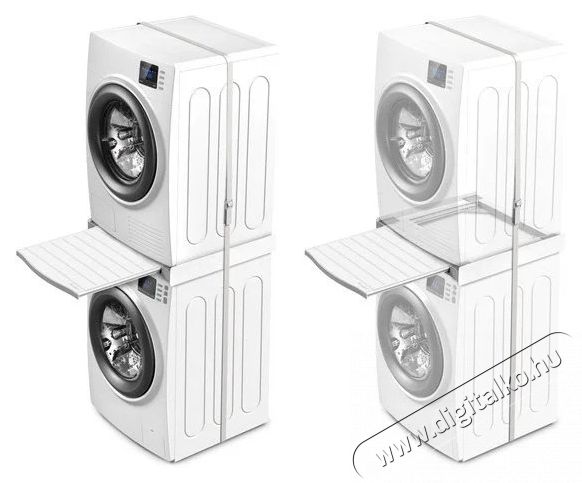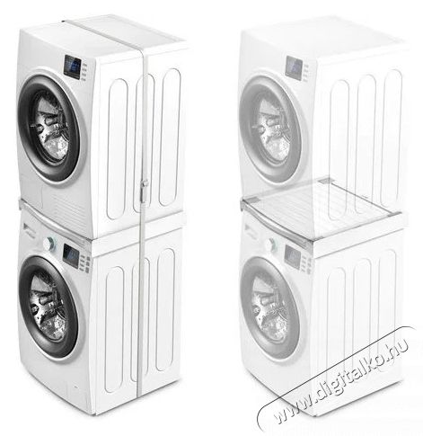 - Kiváló megoldás a mosókonyha helyének maximalizálására, mivel lehetővé teszi, hogy a szárítógépet egyszerűen, praktikusan és biztonságosan a mosógép tetejére helyezd