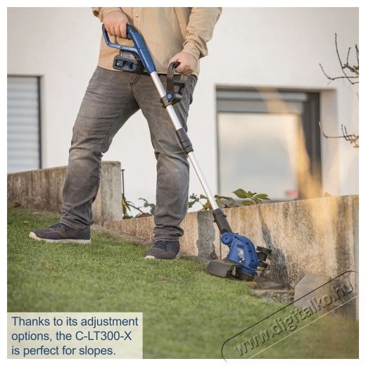 A könnyű Scheppach C-LT300-X akkus 2 az 1-ben szegélyvágó ideális a könnyű fűvágáshoz, még a nehezen elérhető helyeken is, és megfelelő segítőtárs a pázsitszegélyek nyírásában is. A vezeték nélküli működésnek köszönhetően a gép kezelése nagyon kényelmes.