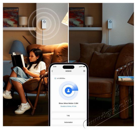 Az intelligens jelenlétérzékelés a megfelelő időben gondoskodik a világításrólAz okos jelenlétérzékelő gondoskodik róla, hogy a lámpák felkapcsolva maradjanak az otthonodban, amikor a szobában tartózkodsz, és automatikusan lekapcsolódjanak, amikor távozol. A fejlett jelenlétérzékelésnek köszönhetően nemcsak a mozgást észleli, de még azt is, ha van valaki a szobában, ami ideális például, ha olvasol, dolgozol vagy lazítasz. Az érzékelőt könnyen összekapcsolhatod az okosvilágítással, hogy automatikus jeleneteket hozz létre, amelyek megkönnyítik a mindennapi életedet, miközben segítenek energiát megtakarítani.