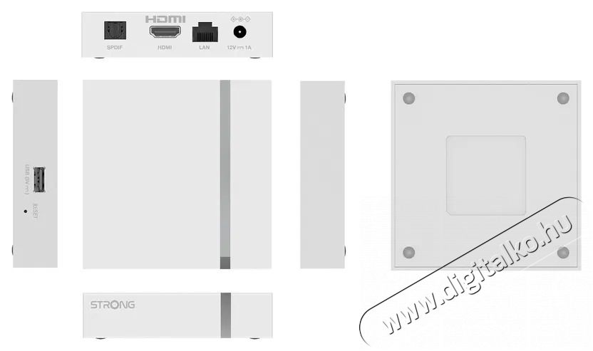 A Strong LEAP-S3+ V2 médialejátszó csatlakozók széles választékát kínálja az összes szükséges eszköz egyszerű csatlakoztatásához. A fő interfész a HDMI 2.1, amely a legjobb minőségű képet és hangot biztosítja, ha televízióhoz csatlakoztatod. Az internetkapcsolathoz stabil LAN (RJ-45) kapcsolatot vagy kényelmes, kétsávos Wi-Fi-t (2,4 GHz és 5 GHz) használhatsz. Az USB 2.0 portnak köszönhetően multimédiás fájlokat játszhatsz le pendrive-ról vagy külső merevlemezről. Optikai S/PDIF kimenet is rendelkezésre áll, amely lehetővé teszi a soundbarhoz vagy házimozihoz való kapcsolódást a kiváló hangélmény érdekében. A Bluetooth kapcsolat megkönnyíti a vezeték nélküli fejhallgató, billentyűzet, egér vagy gamepad csatlakoztatását.