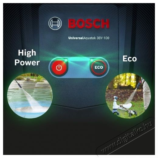 A BOSCH UniversalAquatak 36V-100 0.600.8C7.000 magasnyomású mosó főbb jellemzői- Akkumulátoros működés a Bosch 36V Power For All rendszerben a maximális mobilitás érdekében