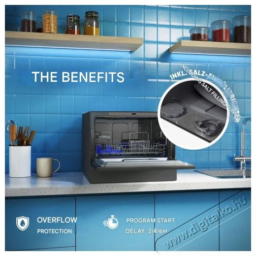 Takarítson meg energiát és vizet ezzel az asztali mosogatógéppel. A mini mosogatógép különösen hatékonyan működik, ami nemcsak a környezetet védi, hanem csökkenti az áram- és vízköltségeket is
