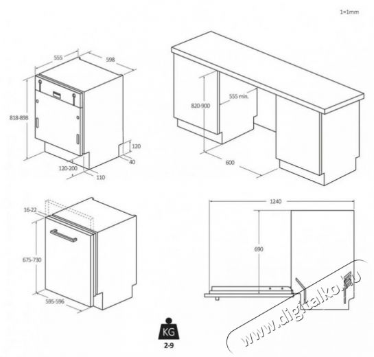 - A beépíthető mosogatógép tömege 35 kg