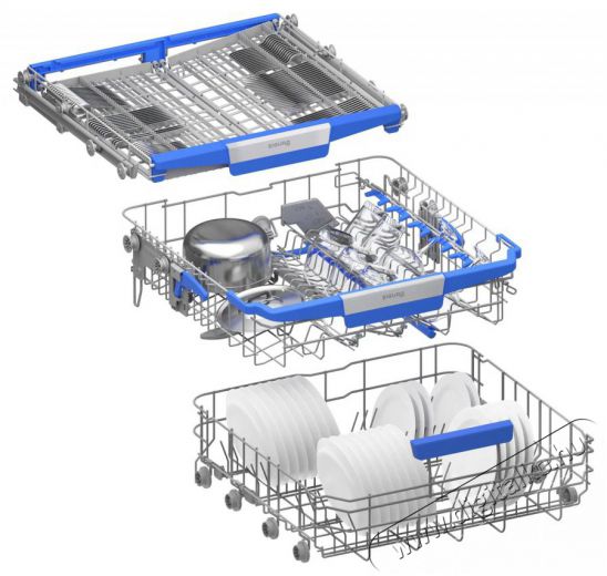 A felső kosár elhelyezése lehetővé teszi, hogy a mosogatógépbe magasabb edények is beférjenek.
