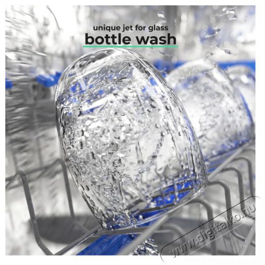 A mosogatógép speciális fúvókákkal és tartókkal van felszerelve a poharak és palackok mosásához.