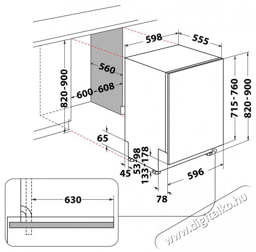 Szélesség 598 mm