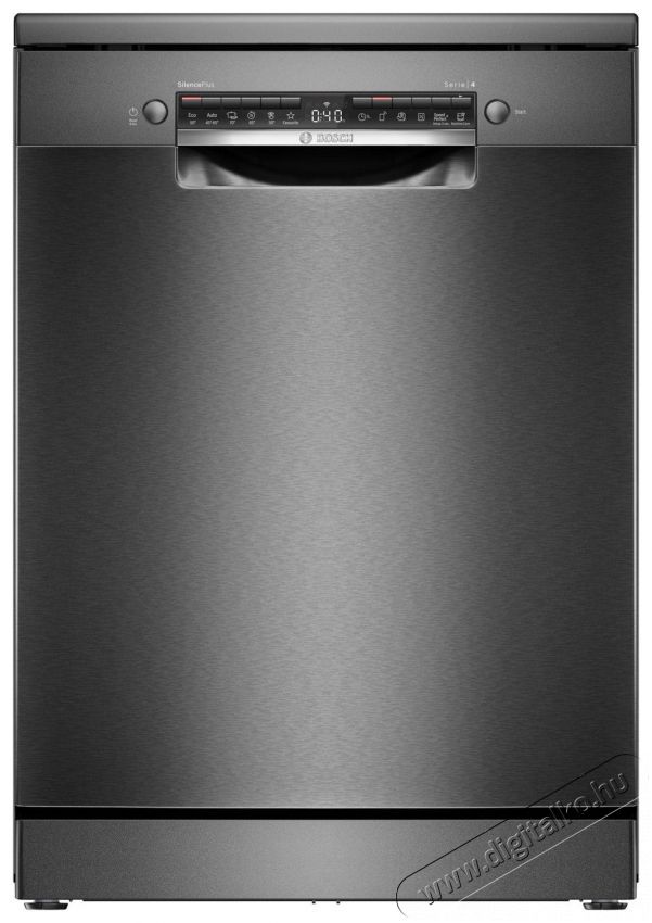 BOSCH SMS4EMC06E Serie 4A mosogatógép használatával munkát, vizet és időt spórolhatsz meg. A standard (60 cm széles) Bosch mosogatógép elsődlegesen olyan háztartásokba ideális, ahol sokat főznek. A szabadonálló mosogatógépet akárhol elhelyezheted, ahol elérhető közelségben van a vízbekötés, az áramcsatlakozó és a szennyvízlefolyó. Az ajtó elülső részén lévő kezelőpanel akkor is megengedi a kezelést, amikor a készülék ajtaja csukva van.