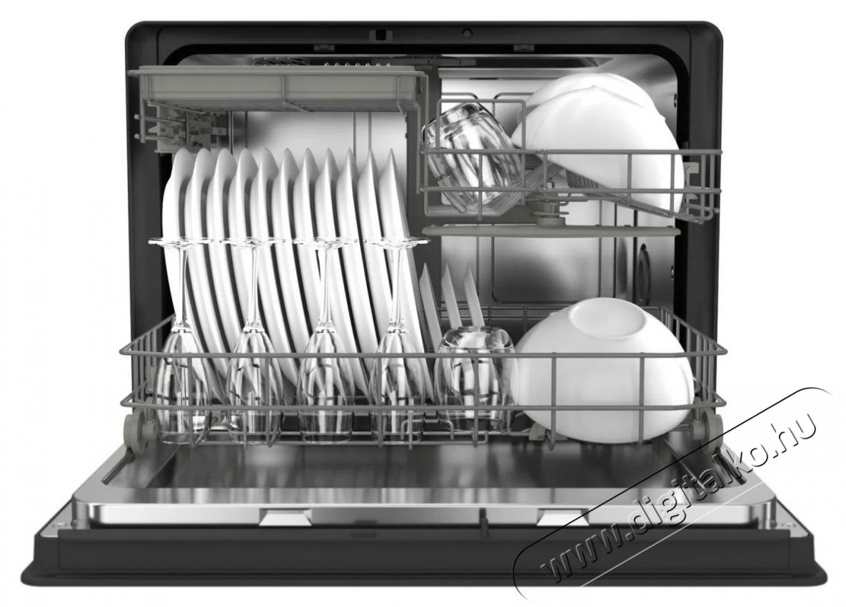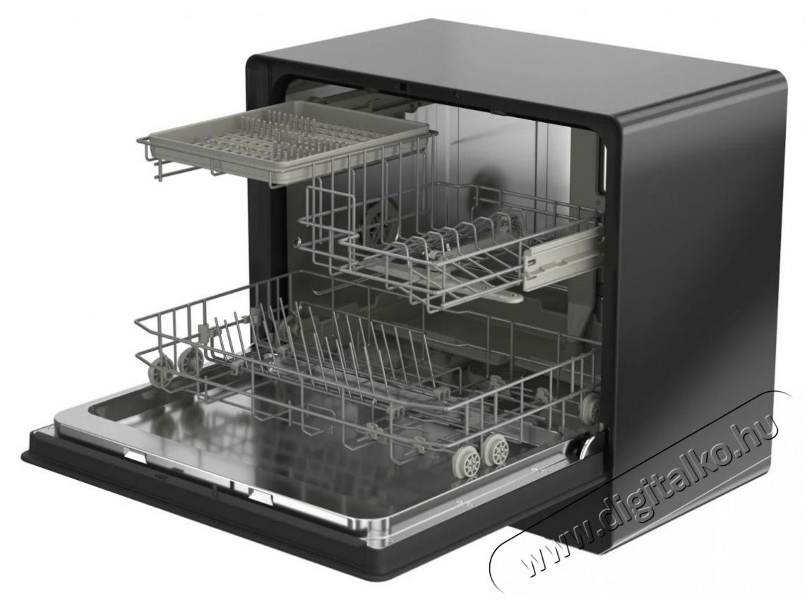 SIGURO SGR-DW-T352B Compact Wash mosogatógépBemutatjuk a SIGURO SGR-DW-T352B Compact Wash mosogatógépet, amelynek hála nem kell többé kézzel mosogatnod, még akkor sem, ha kevés a hely. Ezt az asztali mosogatógépet kis lakásban, nyaralóban vagy irodában való használatra tervezték, egyszóval bárhol, ahol nincs elegendő hely egy normál méretű mosogatógép számára. A készülék mindössze 37,5 cm mély, és még a mosogató alatti szekrénybe is befér a szemetessel együtt. Kompakt mérete ellenére mosási ciklusonként akár 5 teríték és akár 25 cm magas tányérok is elférnek benne.Ezenkívül összesen 7 mosóprogramot és számos praktikus funkciót kínál, többek között belső rekeszvilágítást, betekintő ablakot és automatikus ajtónyitást.
