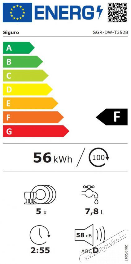 | Energiafogyasztás (ECO program) | 56 kWh/100 c. |