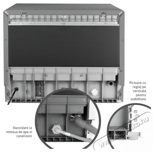 A csomag tartalma:Mosogatógép, evőeszköztartó, edénytartó, eltávolítható és mosható szűrő (beépítve), tapadókoronggal ellátott leeresztő cső az optimális rögzítéshez és csatlakozókkal, vízbevezető cső csatlakozókkal, használati és telepítési útmutató, garancialevél.