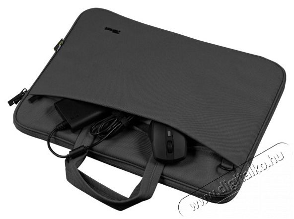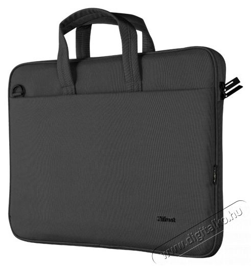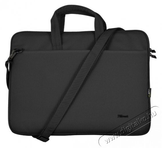 A Trust Bologna Laptop Bag laptoptáska környezetbarát anyagból készült, amelyhez akár 11 újrahasznosított PET-palackot is felhasználtak. Ez tehát egy ökológiai anyagokból készült, "zöld" kialakítású termék. A táska egy nagy fő rekeszt kínál puha mikroszálas béléssel, hogy megvédje a laptopodat az ütődésektől és karcolásoktól. Az elülső cipzáras zsebben kényelmesen tárolhatók a kisebb laptop tartozékok, továbbá telefon és egyéb tárgyak.